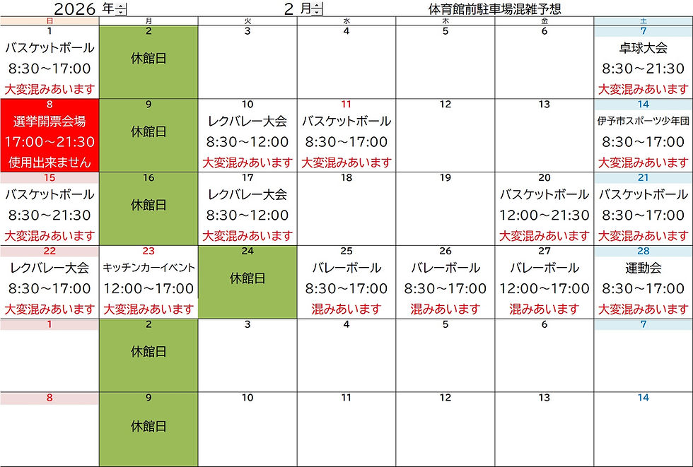 体育館前駐車場混雑予想表